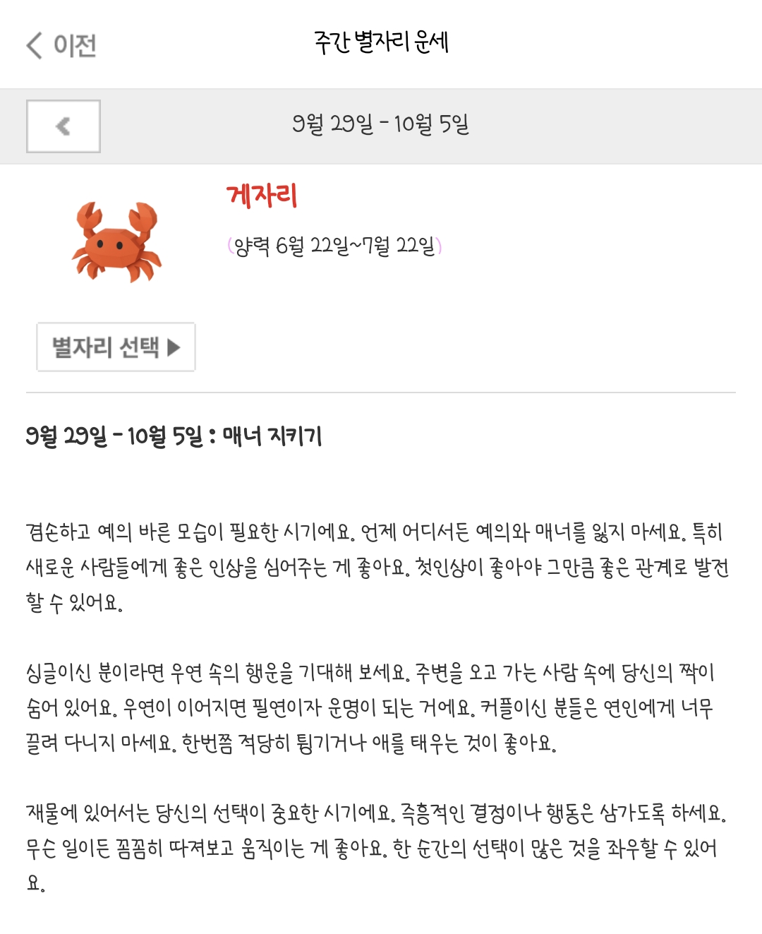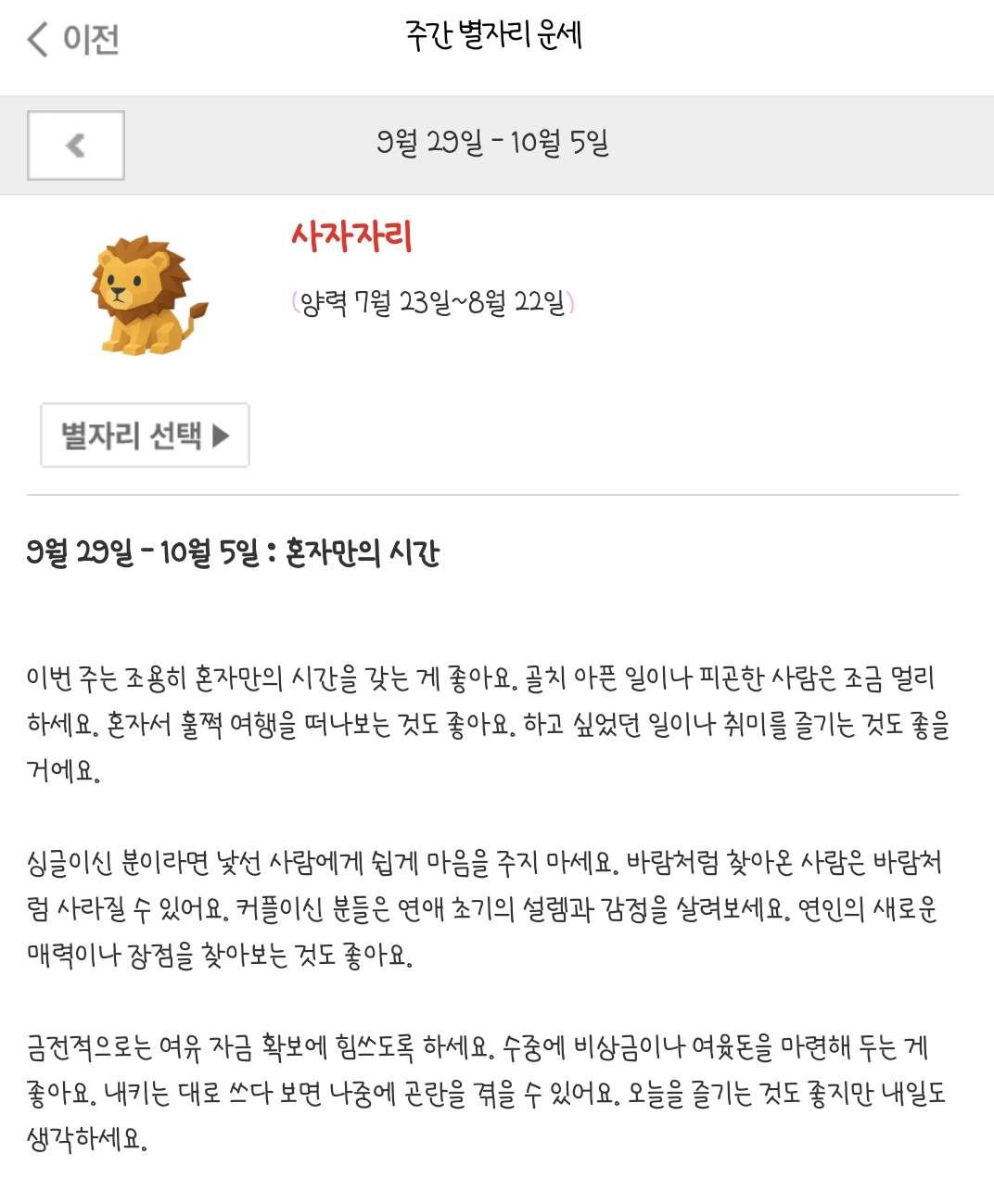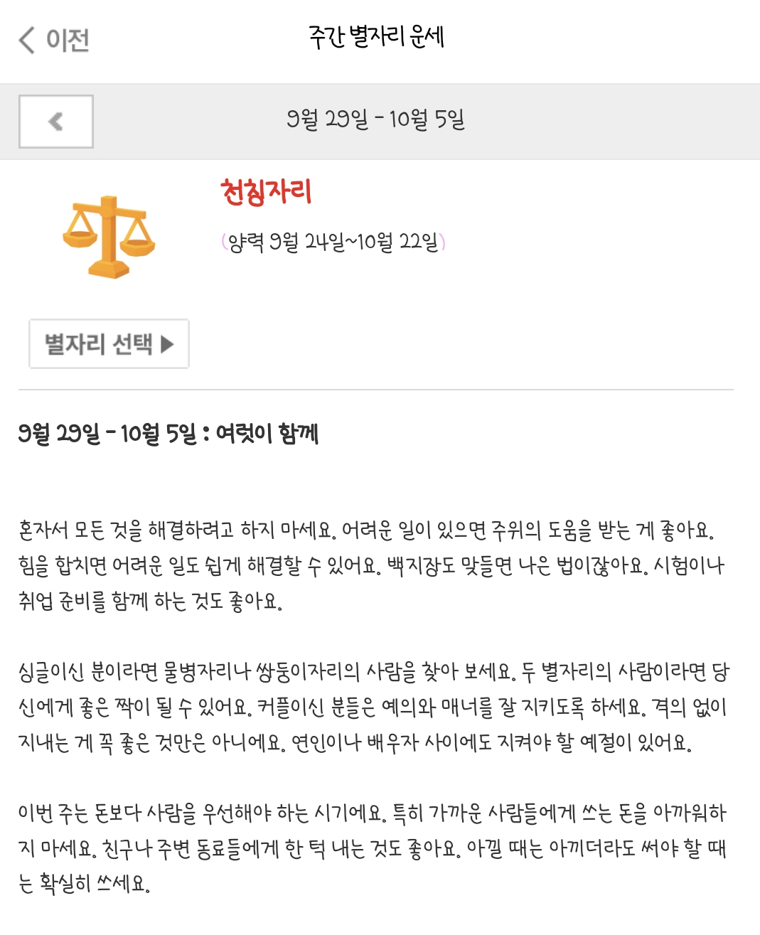 9월 29일~ 10월5일 주간 별자리운세