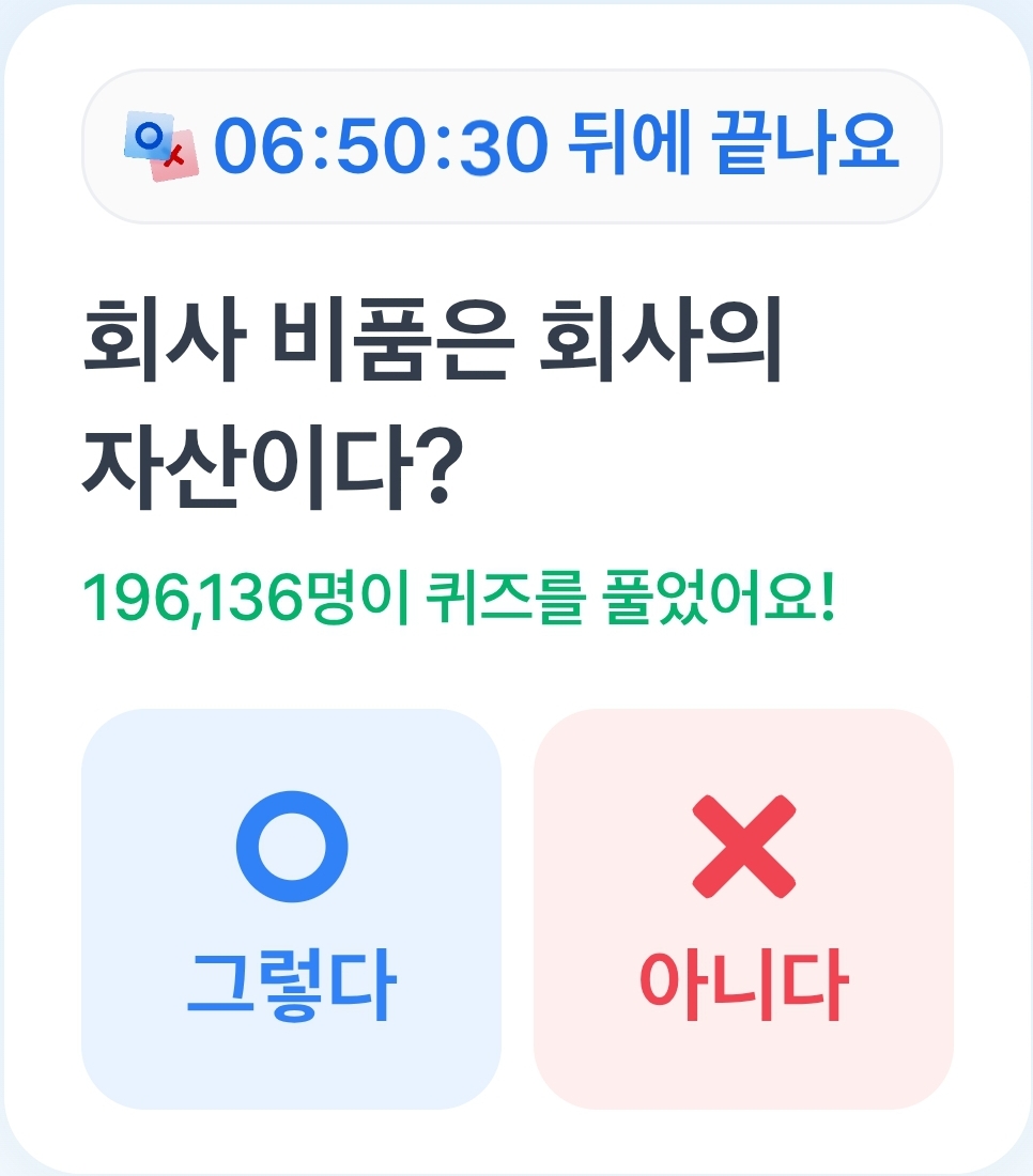 토스 11월 1일 퀴즈 정답 회사 비품은 회사의 자산이다?