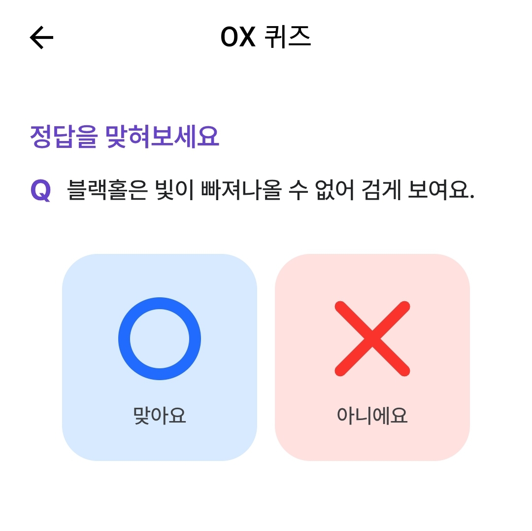 비트버니 11월 11일 OX 퀴즈 정답 블랙홀은 빛이 빠져나올 수 없어 검게 보여요.