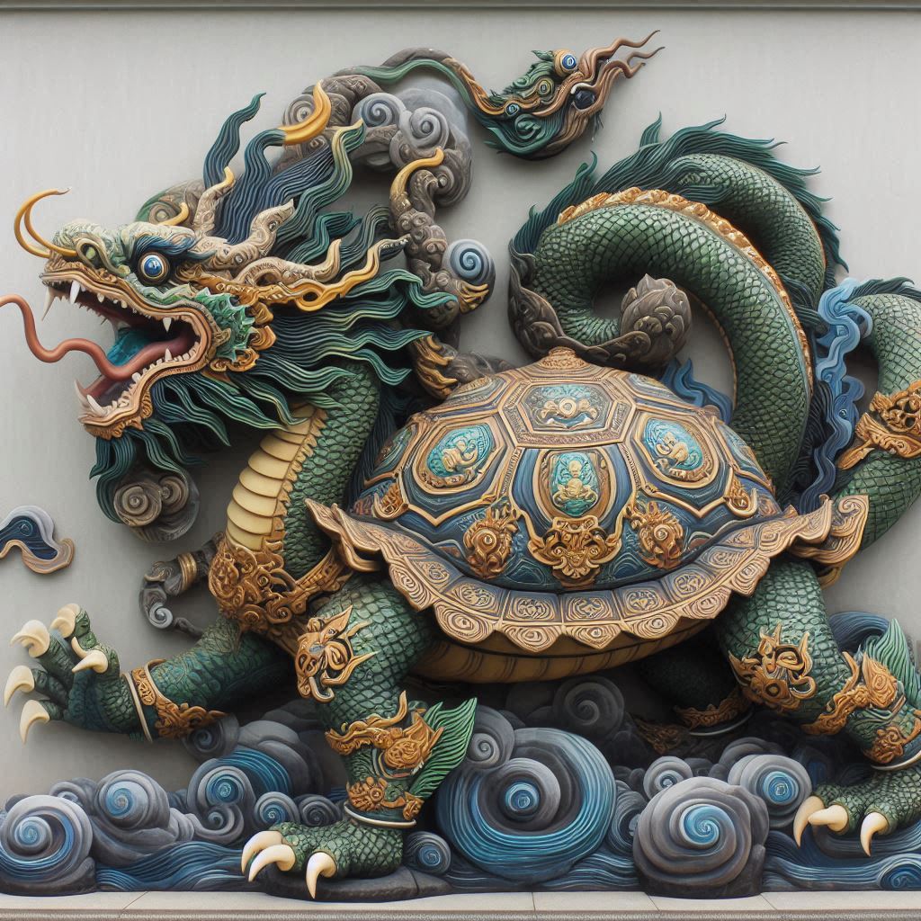 - 형상: 거북과 뱀이 결합된 모습으로 묘사됨.